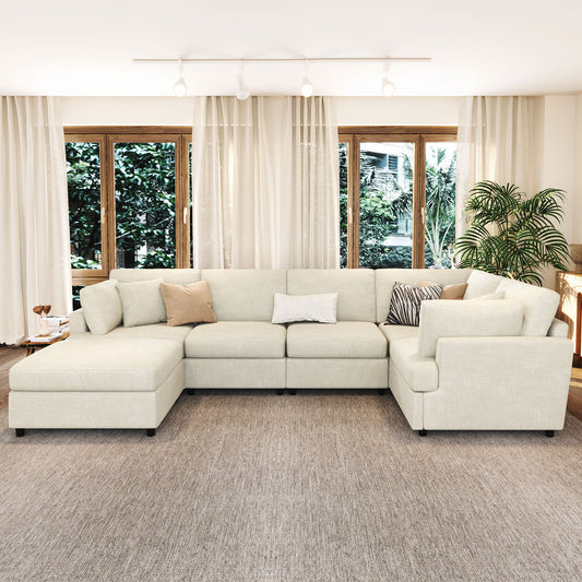 Comfortable Deep Seat Reversible Modular 6 Seater Sectional Super Soft Sofa U Shaped Sectional Couch with 3 Ottomans, 3 Toss Pillows and 2 Arm Pillows W714S00561