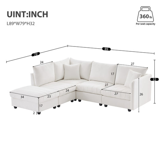 Free Combination Comfy Upholstery Modular Oversized L Shaped Sectional Sofa With Reversible Ottoman, White Chenille W714S00559