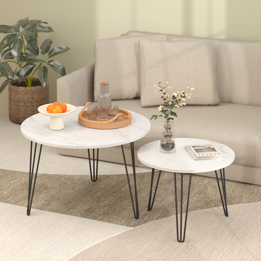 27.56'' Round Nesting Coffee Table Set of 2, Circular Nesting End Table Set, Round Marble Tabletop, and Sturdy Metal Base for Living Room, bedroom, White W808P176737