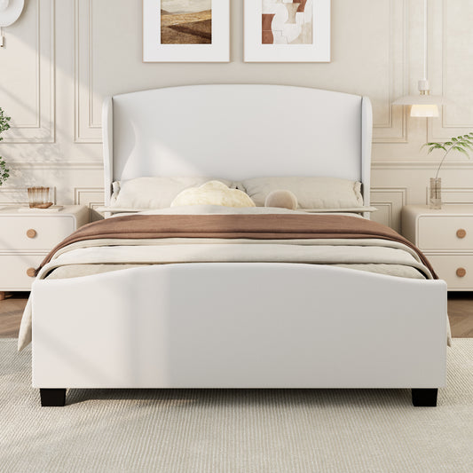 Queen Size Bed Frame, Modern Upholstered Platform Bed with Wingback Headboard, Velvet Bed Frame with Wood Slat Support, Easy Assembly, No Box Spring Needed(White, Queen) W1303128208