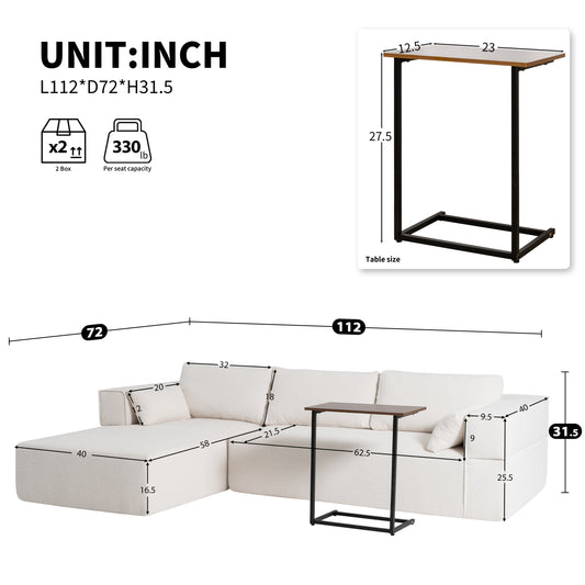 112'Modular Sectional Sofa with Free Side Table,Wide Seat,Fully Compressed,Wrinkle-resistant Boucle Fabric Couch with Chaise,Free Combination,L-Shaped Sofa for Living Room,No Assembly Required,3 Color N723S9670A