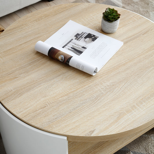 Round Coffee Table,31' Coffee Table for Living Room,2-Tier Rustic Wood Desktop with Storage Shelf Modern Design Home Furniture(Natural color and white) W1117P224566