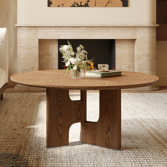 31.5 Inches Round Rustic Ash Wood Veneer Coffee Table for Small Living Room W3136P354198