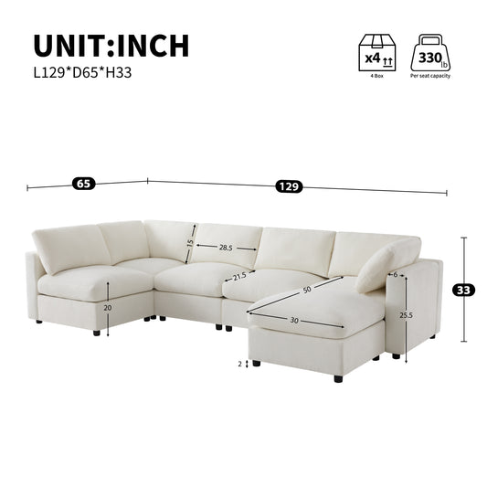 129' Modular Sectional Sofa, 6 Seat Cloud Sofa Bed with High Density Foam, U-Shaped Chenille Couch Set with Ottoman, Free Combination, Convertible Sleeper Sofa for Living Room, Apartment N723S9792A