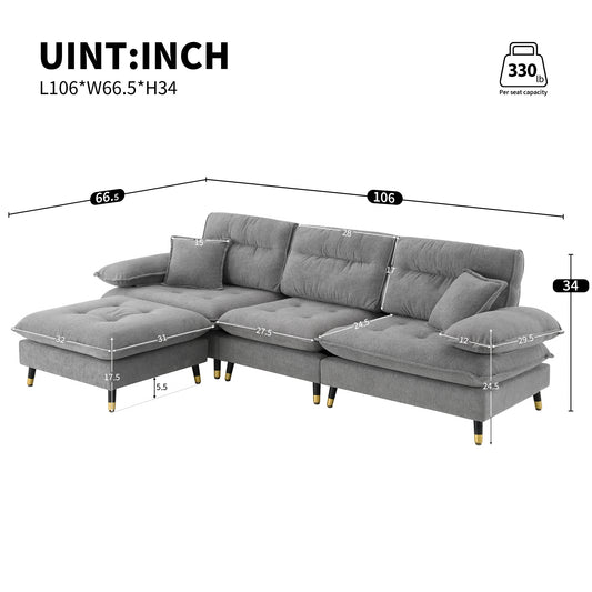106*66.5' L shaped Convertible Sectional Sofa,4 Seat Tufted Couch Set with Two-tone Adjust Legs,Cloud Chenille Fabric,Movable Ottoman for Living Room, Apartment,Office,3 Colors N723S6035E