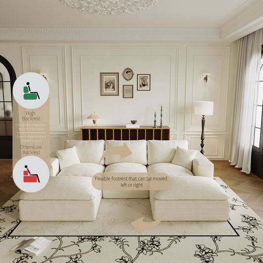 104-Inch Corduroy Modular L Shaped Sectional Sofa,Luxury Floor Couch Set,Upholstered Indoor Furniture,Foam-Filled Compressed Sofa for Living Room,Bedroom,4 PC Free Combination W834S00385