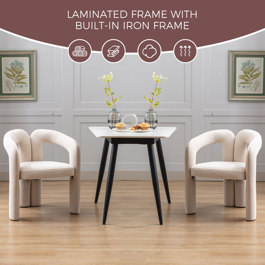 COOLMORE Contemporary Designed Velvet Fabric Upholstered Accent/Dining Chair /Barrel Side Chairs Kitchen Armchair for Living Room set of 2 (Beige Velvet) W395103720