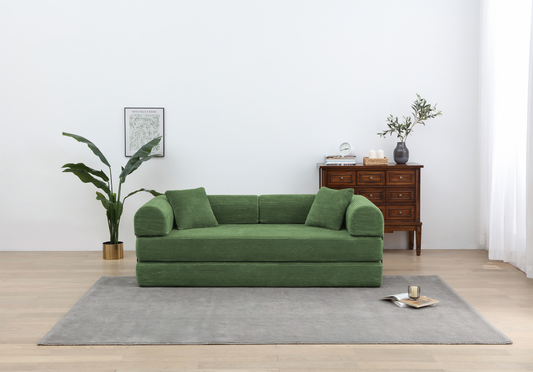 Convertible Sleeper Sofa Bed with Cylindrical Pillow - Corduroy Folding Mattress Couch with Fixed-Shape Frame for Living Room, Bedroom, Lounge, Studio - OLIVE GREEN W3199P322614