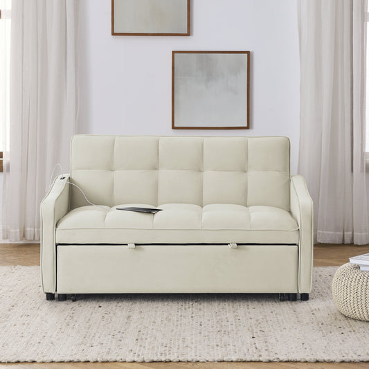 Loveseats Sofa Bed with Pull-out Bed,Adjsutable Back and Two Arm Pocket,TypeC and USB Charging with Copper nail,Beige (47'x53'x31') W1413124442