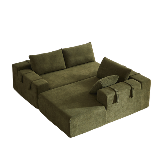 Modern Cloud 4-Seater Sectional Curved Sofa, Minimalist Compression Living Room Couch, No Assembly Needed, Chenille, Green W1413S00106