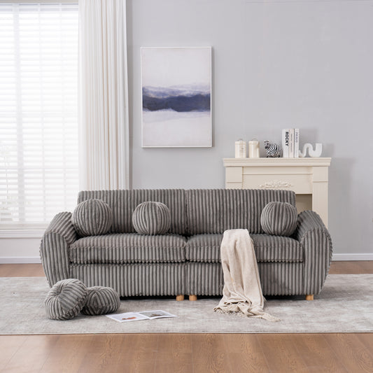 Modern Sofa for Living Room, 84' Grey Corduroy Sofa Couch, Sectional Love Seat Couch, Upholstered Sofa for Apatment Bedroom Home Office W2363S00077