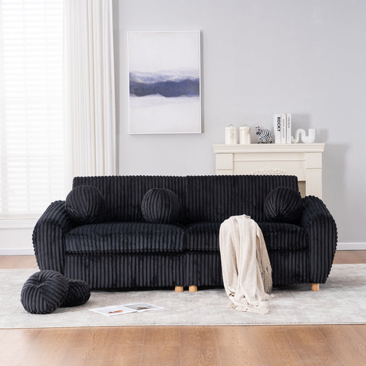 Modern Sofa for Living Room, 84' Black Corduroy Sofa Couch, Sectional Love Seat Couch, Upholstered Sofa for Apatment Bedroom Home Office W2363S00075