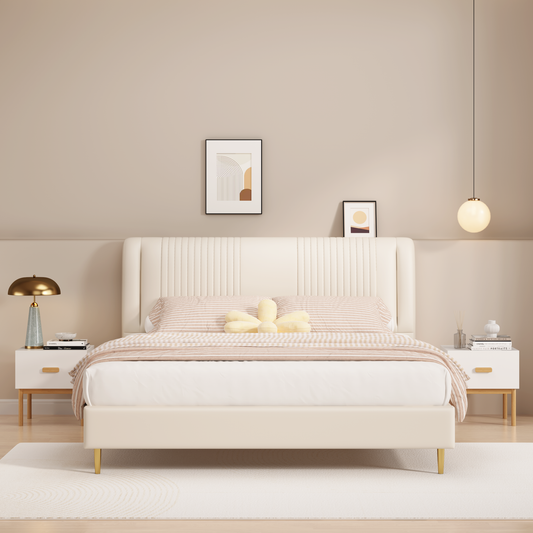 Modern Upholstered Dining Chairs with Metal Legs, Beige Fabric, Set of 2 N768P211163W