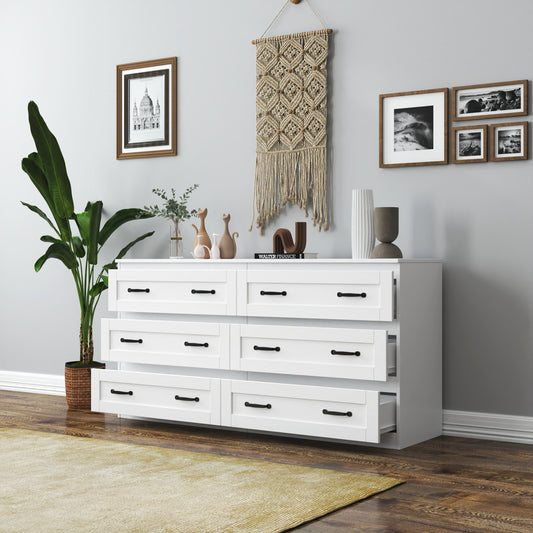 Modern white side cabinet with 6 drawers , Wood Chest of Drawers with Metal Handle, Storage Organizer for Living Room , Bedroom or Hallway, White W331S00164