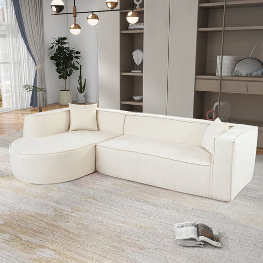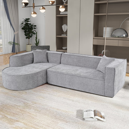 U_Style Modern Style Sectional Sofa,Sponge Sectional Sofa Couch,Modular L-Shape Sofa Couch with Elegant curved design and luxurious chenille fabric,two throw pillows,for Living Room, Study WY000417AAA