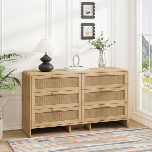 51.18'6-Drawers Rattan Storage Cabinet Rattan Drawer,for Bedroom,Living Room,Natural (Same SKU:W75784346) W757P198980