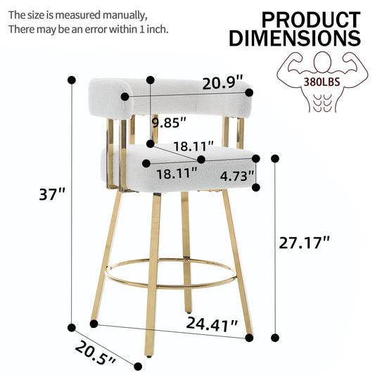 Modern Upholstered Bar Stools Set of 2, Boucle Fabric Counter Height Chairs with Metal Frame & Armrests, Kitchen Island Bar Chairs for Home, Dining Room, Cafe,White W1901P264274