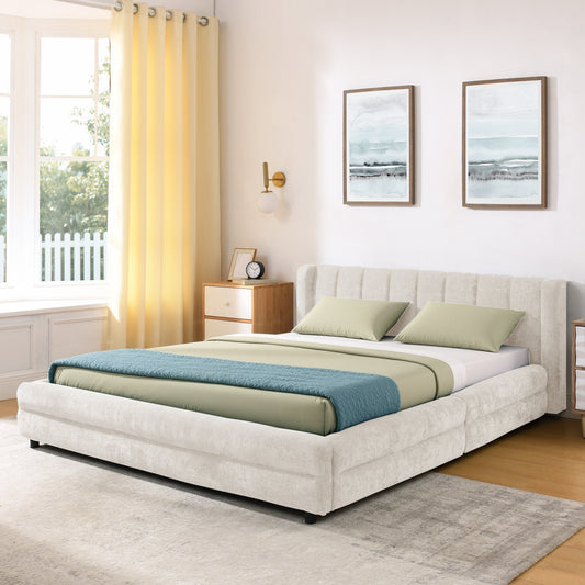 Queen Size Upholstered Bed ,comfortable upholstered bed frame, Chenille fabric, with headboard and solid bed frame. With drawer for storage.-Beige(88.5''*68.5''*31'') W487S00395