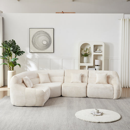 [Video]123.2 -inch Modern Luxury Curved Corner Sectional Sofa, Chenille Modular Cloud Sofa, Four Pillows, High-Back Oversized Four-Seater Living Room Sofa,No Assembly Required,beige W3505S00060
