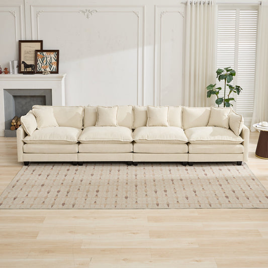 Cloud Sofa 4 Seats (Ottoman is not included), Modern Sectional Couch, for Living Room Bedroom and Apartment, Comfy Double Layer Upholstered Seat Cushion, Breathable Chenille Fabric, Beige,SW5014BG W1143S00054