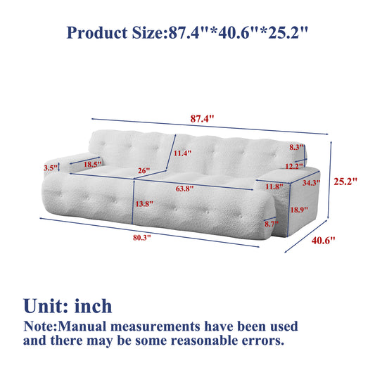 [Video]87.4-inch Cloud Series Minimalist Button-Tufted Square Arm Three-Seater Sofa, Chenille Sofa, Comfortable Upholstered Sofa with Button-Tufted Design, Snow White W3505P383948