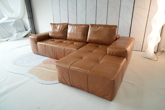 Boneless Couches for Living Room, Brown Faux Leather Cloud Sectional Couches with Chaise, Deep Seat L Shaped Modular Sofa, No Assembly Required Sofas in a Box(Right,Faux Leather,Brown) W3955S00011