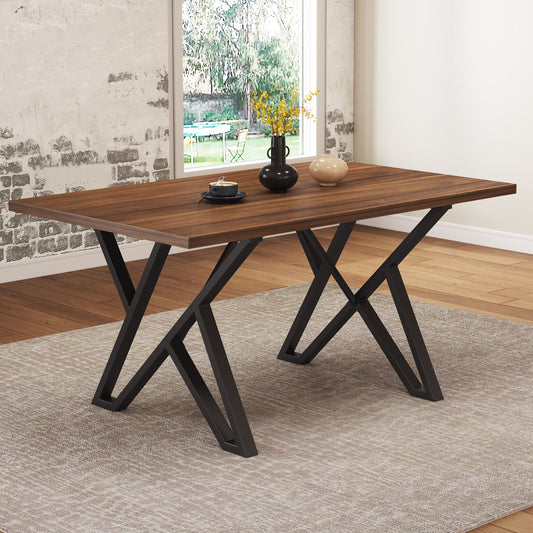 Industrial Style Indoor Dining Table with Metal Legs, Walnut Finish, MDF and Metal, 59.04' x 35.5' N768P228017B