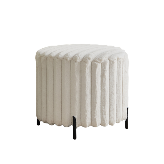 Beige Upholstered Round Pouf Ottoman Foot Rest with Black Metal Legs, Faux Fur, 22.05' Wide W3098P272526