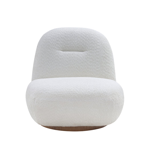 Larger Luxury Modern Swivel Accent Chair, Curved Back White Boucle Rotating Sofa Chair, Minimalist Style Comfy Single Cloud Chair Armless Cozy Chair for Living Room Apartment Reception Space W2664P371876