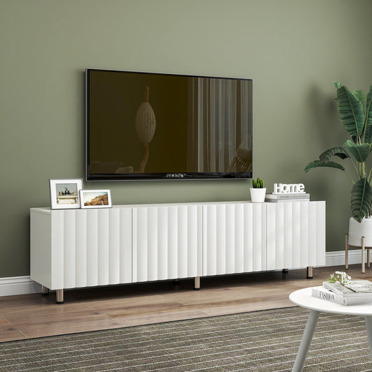 White Modern TV Stand Fluted 68' t, Entertainment Center with Storage Doors, TV Console Media Cabinet, for 55+ Inch TV, Living Room W1321P185967