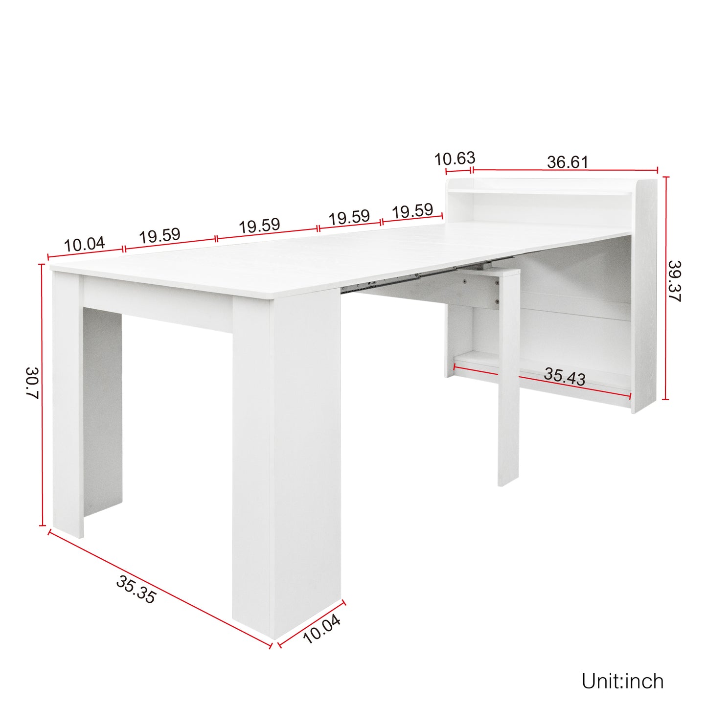 Featuring an understated silhouette with clean lines, this extendable dining table brings a modern flair to your home Keep the table leaves completely extending, it turns into a spacious dining table . When it's not in use, you can use it as a sideboard with storage.Expanded Table Dimensions: 36.61L x 98.43W x 39.37H in This dining table fits easily in smaller spaces, while its neutral finish helps it blend with your existing arrangement. Suitable for Kitchen, Living Room, Dining Room, Small Apartment, Cafe,Restaurant,Home Office. Material:Material is 15mm particle bpard,back board is 3mm MDF. Made of wooden structure with melamine finish for durability and easy maintenance. Aufgrund des Lichts oder der Anzeige kann die Farbe des tatsächlichen Produkts geringfügig vom Bild abweichen.