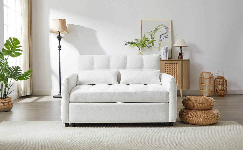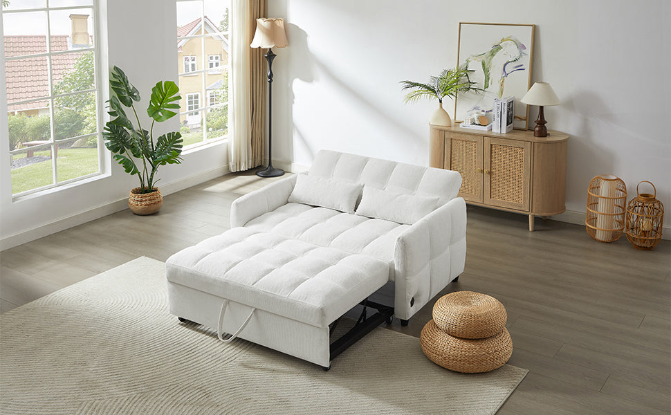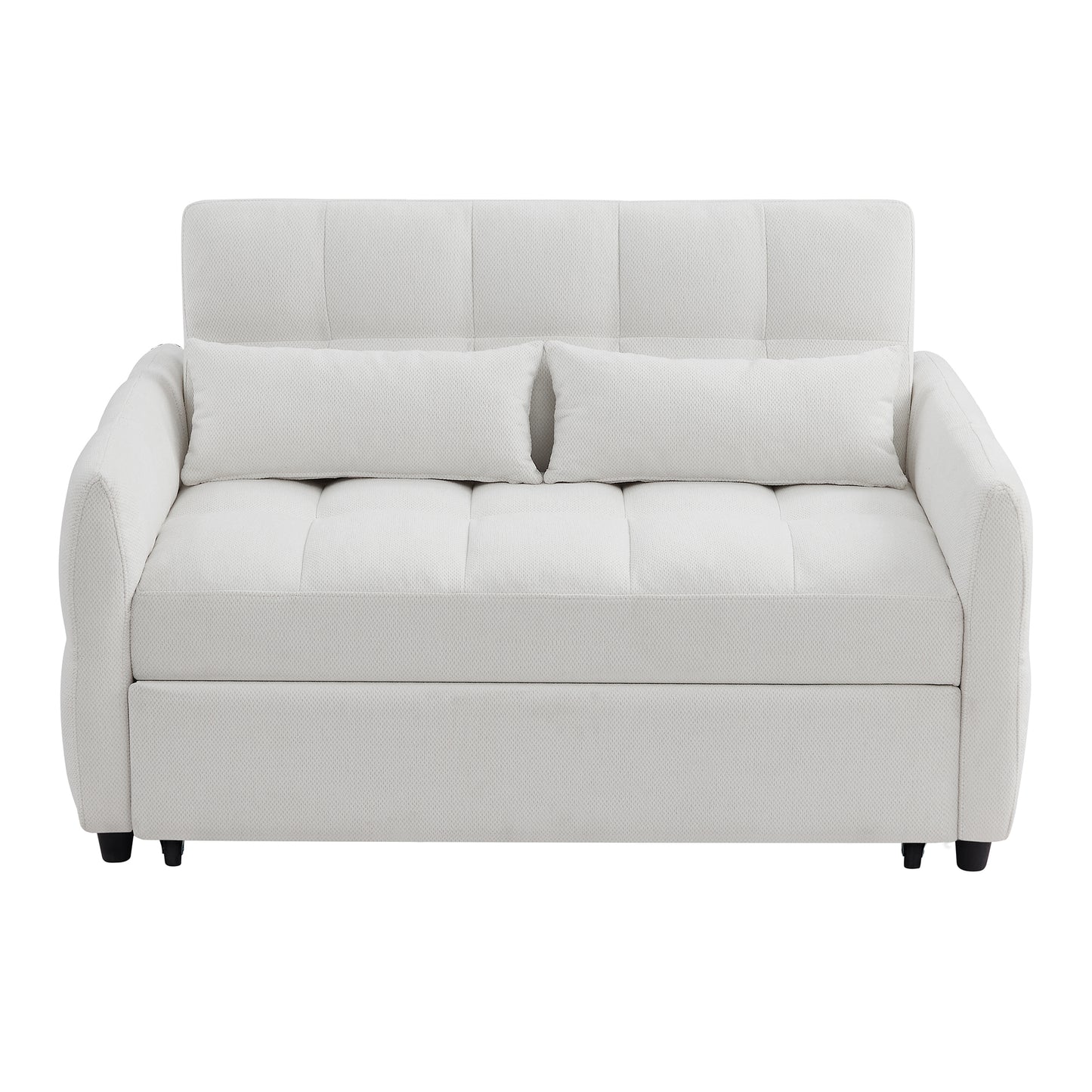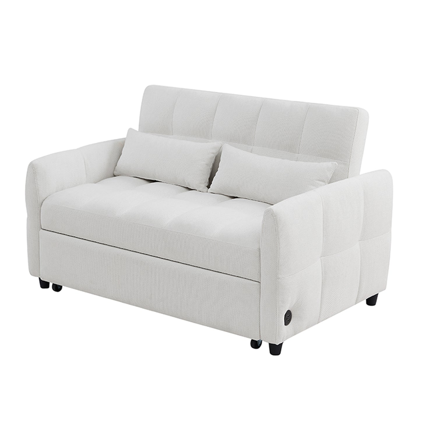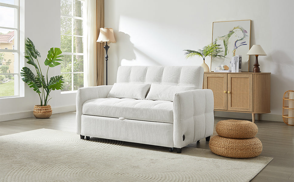 52.8' Loveseat Sofa Pull-out Sofa Bed Tufted Sleeper Sofa with an Adjustable Backrest, Three USB Ports and Two Lumbar Pillows for Living Room, Beige N719S001710A