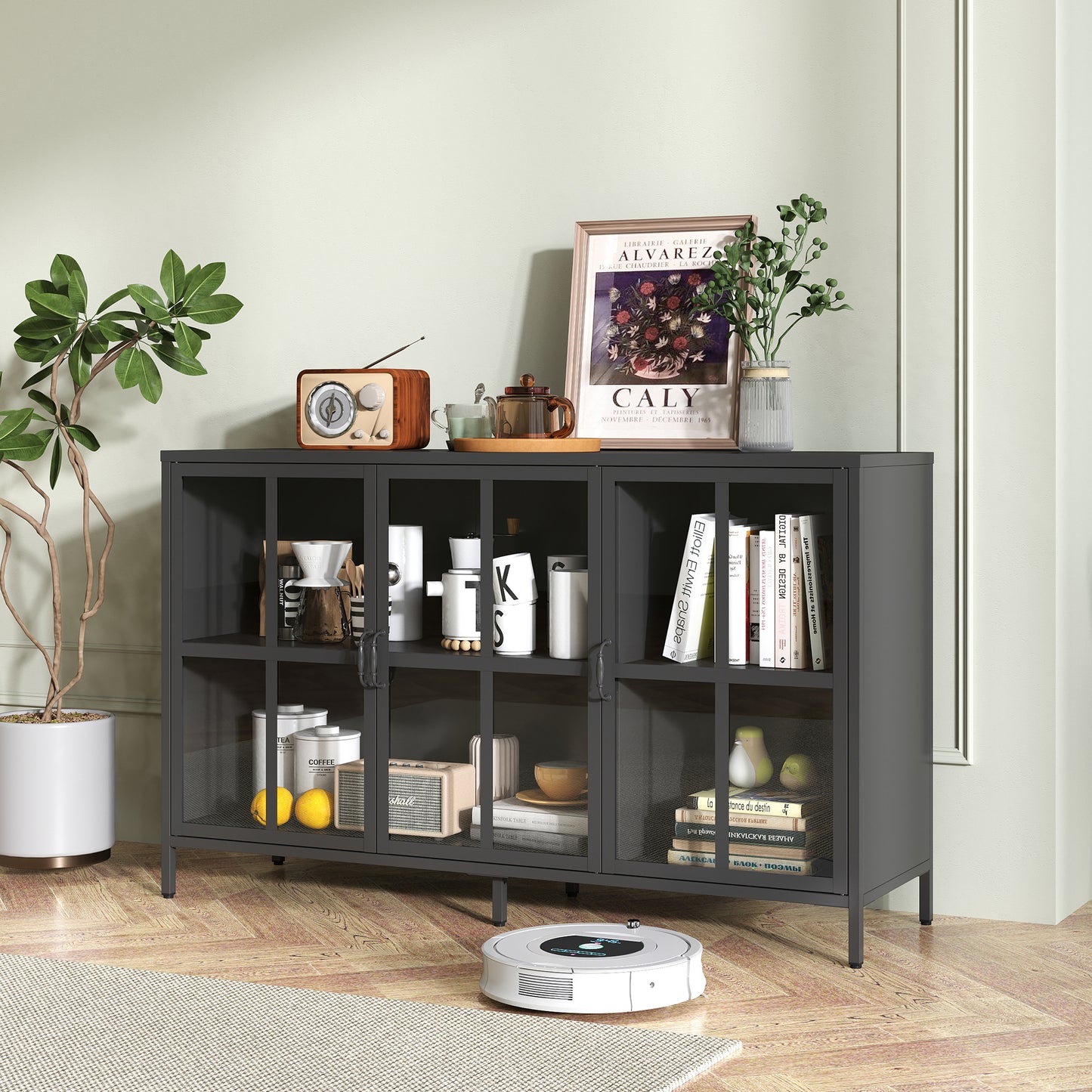 Modern Heavy Duty Metal Sideboard Buffet Cabinet with Storage, Adjustable Feet, Glass Doors, Black Steel, 55.12' T2398P262075