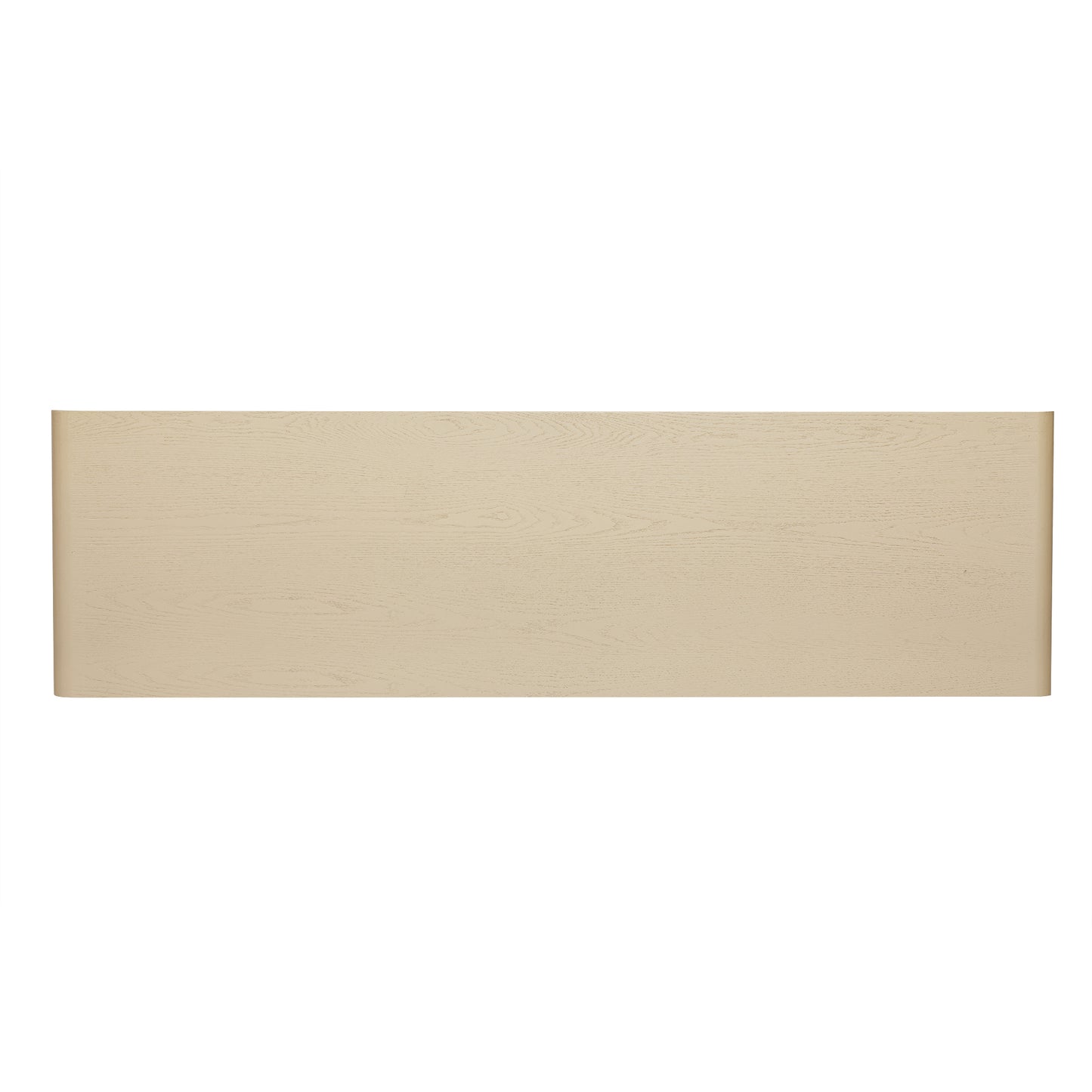 This console table showcases fluted drawer fronts, creating a visually striking texture. Crafted from MDF with solid wood veneer, it blends modern minimalism with rustic charm. The curved edge design ensures a sleek, clutter-free look, while the wood veneer adds warmth and authenticity.The tabletop supports 220 LBS, making it ideal for showcasing decorative items, large vases, or even coffee machines, record players, and other small household appliances.