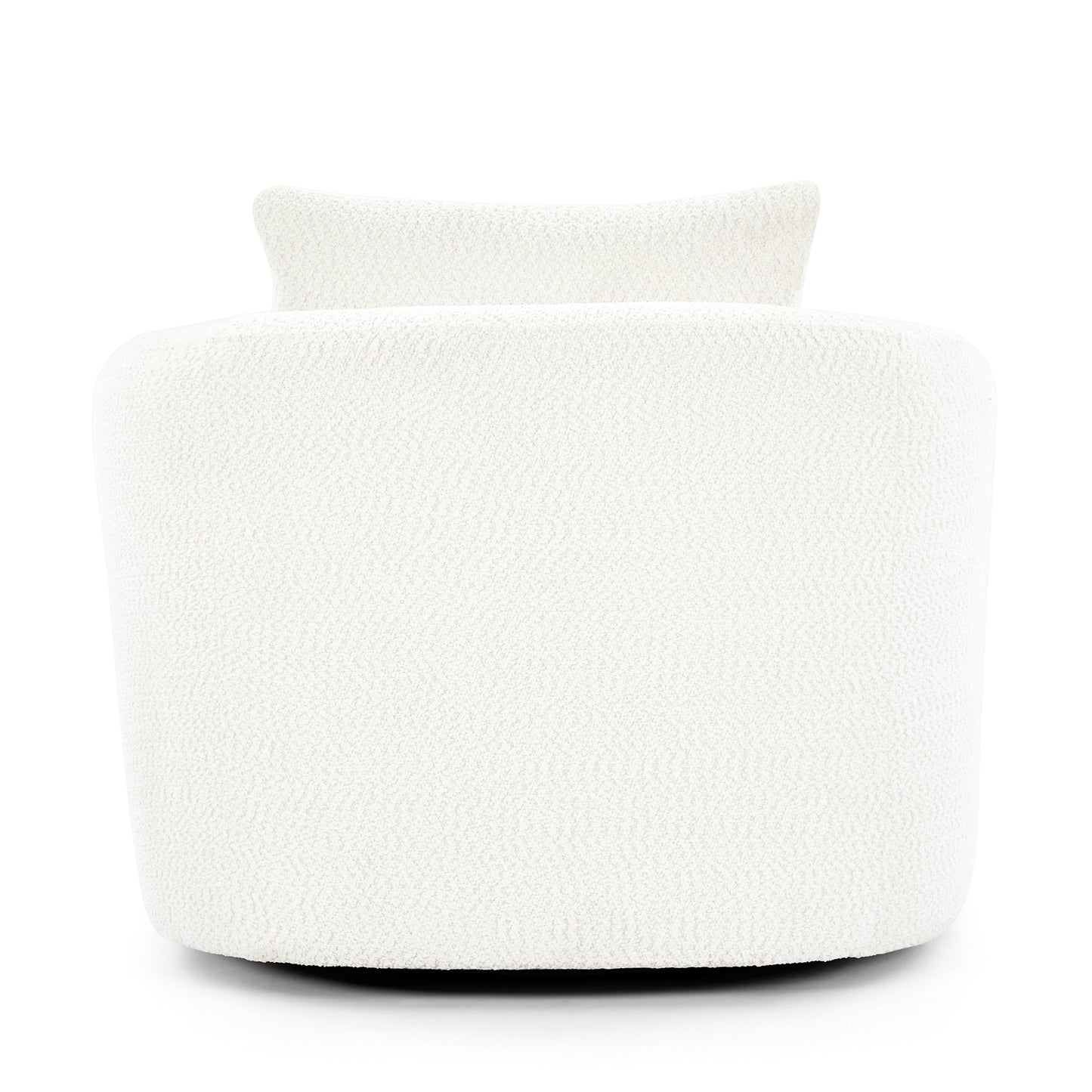 - Comfortable and Spacious Cushioning – This swivel chair features a pocket spring cushion system paired with high-density foam and soft boucle fabric, offering an exceptionally comfortable and supportive seating experience. With a seat depth of 18.9 inches and a width of 38.2 inches, it provides ample space to relax. These combined elements ensure lasting comfort and support, even during extended periods of sitting.