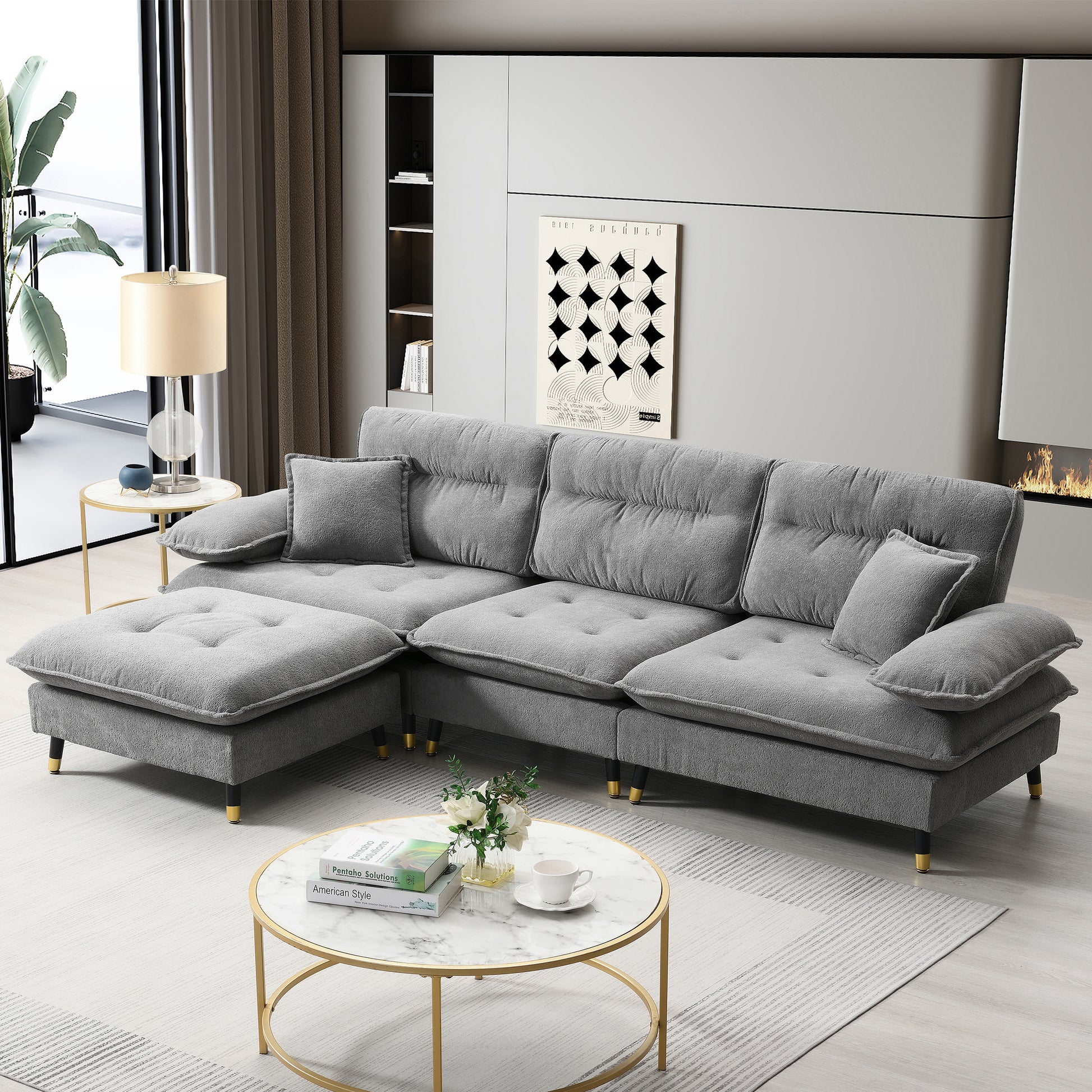 106*66.5' L shaped Convertible Sectional Sofa,4 Seat Tufted Couch Set with Two-tone Adjust Legs,Cloud Chenille Fabric,Movable Ottoman for Living Room, Apartment,Office,3 Colors N723S6035E