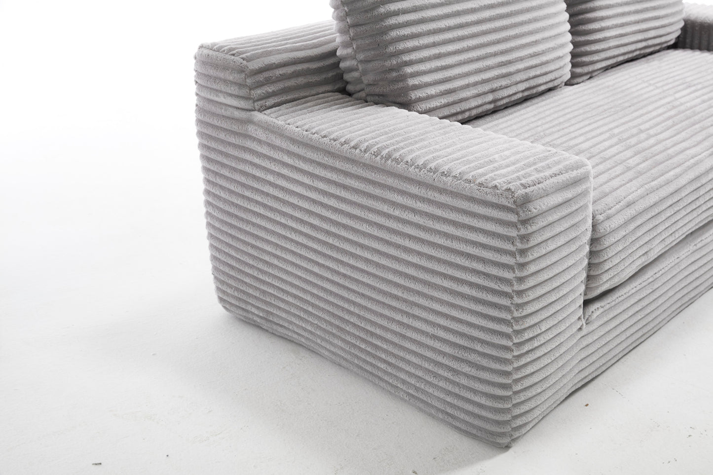 Loveseat Sofa with Memory Foam & Steel Frame - No Assembly, Convertible 2-in-1 Design, Corduroy Fabric - Compact Couch for Small Spaces, Apartments, Home Office & Bedroom (Grey) W2959P272125