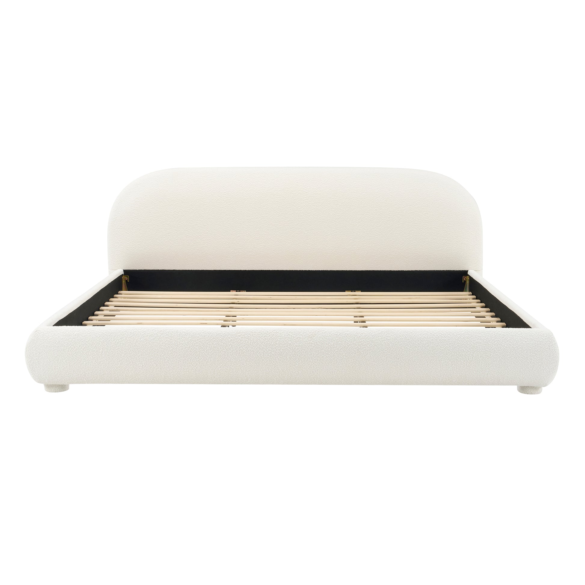 Cream Style Fabric Upholstered Bed, Simple Modern Double Bed for King Size, Warm Cream Tone with Textured Fabric and Curved Headboard N769P348028W